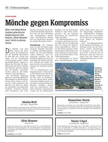 Äbte vom Berg Athos fordern griechische Regierung auf, den Namen „Nord-Mazedonien“ nicht zu akzeptieren.
