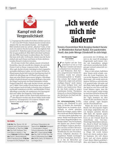 Tennis-Exzentriker Nick Kyrgios fordert heute in Wimbledon Rafael Nadal. Ein packendes Duell, das jede Menge Zündstoff in sich birgt.