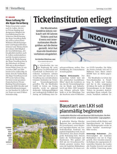 Die Musikladen GmbH in Götzis verkauft seit 40 Jahren Tickets und hat Events mit internationalen Musikgrößen auf die Beine gestellt. Jetzt hat man ein Insolvenzverfahren eingeleitet.