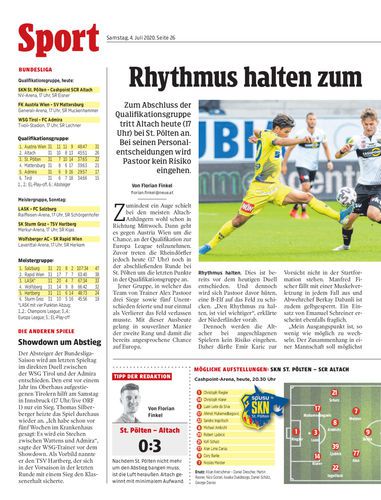 Zum Abschluss der Qualifikationsgruppe tritt Altach heute (17 Uhr) bei St. Pölten an. Bei seinen Personalentscheidungen wird Pastoor kein Risiko eingehen.