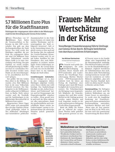 Vorarlberger Frauenbewegung führte Umfrage zur Corona-Krise durch. Befragte berichteten von durchaus positiven Erfahrungen.