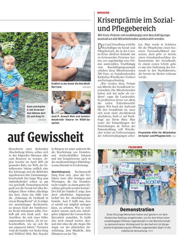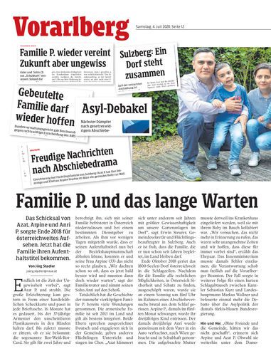 Fall Sulzberg. Das Schicksal der armenischen Familie P. aus Sulzberg sorgte Ende 2018 österreichweit für Aufsehen. Seit gestern hat die Familie nun einen Aufenthaltstitel – und die Freude darüber ist groß. Seiten 12/13 Klaus Hartinger