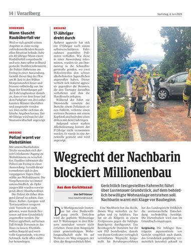 Gerichtlich festgestelltes Fahrrecht führt über Lustenauer Grundstück, auf dem behördlich bewilligte Wohnanlage entstehen soll. Nachbarin warnt mit Klage vor Baubeginn.