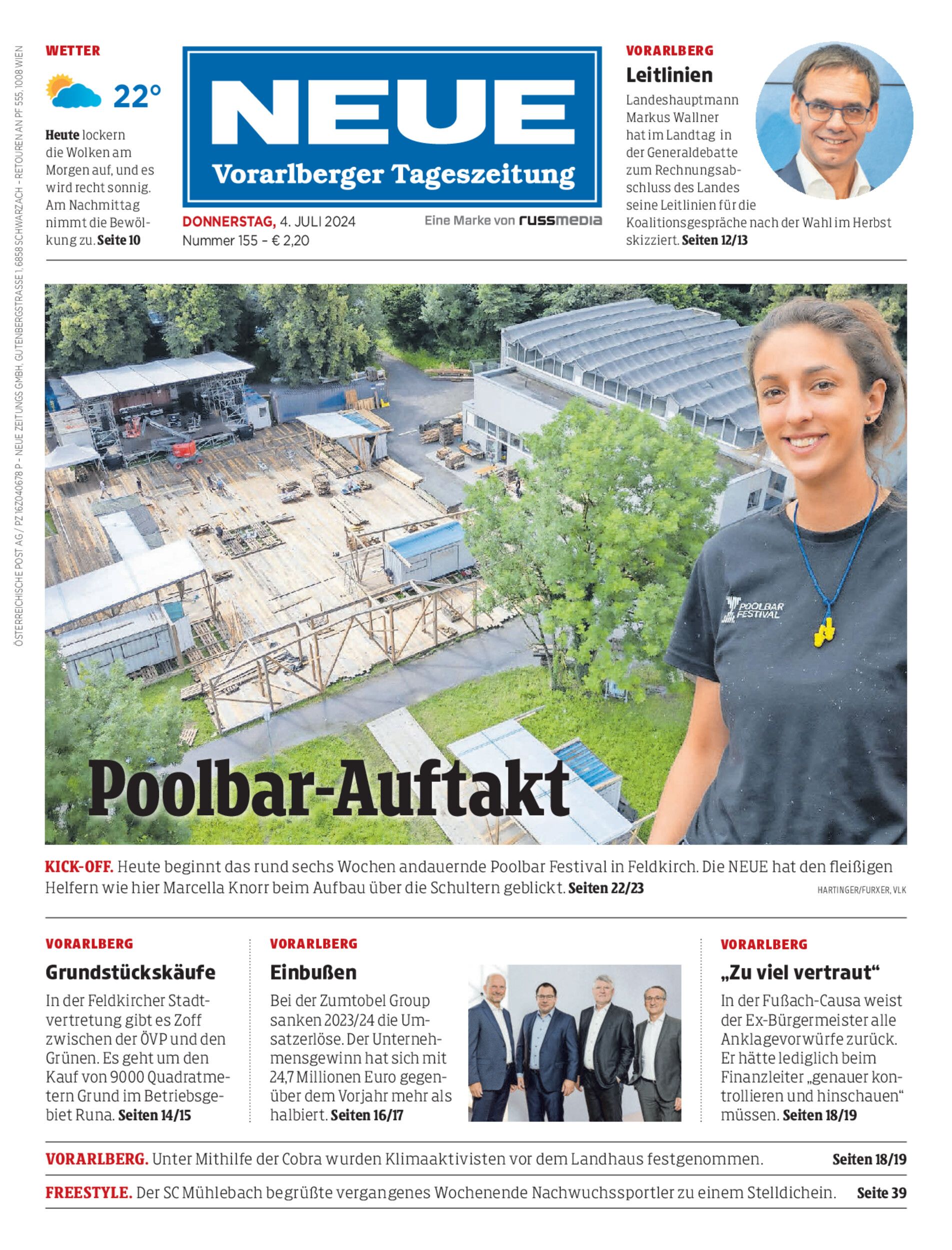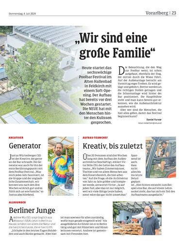 Heute startet das sechswöchige Poolbar Festival im Alten Hallenbad in Feldkirch mit einem Soft-Opening. Der Aufbau hat bereits vor drei Wochen gestartet. Die NEUE hat mit den Menschen hinter den Kulissen gesprochen.