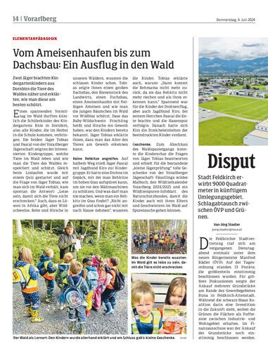 Zwei Jäger brachten Kindergartenkindern aus Dornbirn die Tiere des Waldes näher und erklärten, wie man diese am besten schützt.