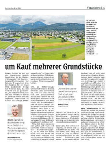 Stadt Feldkirch erwirbt 9000 Quadratmeter in künftigem Umlegungsgebiet. Schlagabtausch zwischen ÖVP und Grünen.