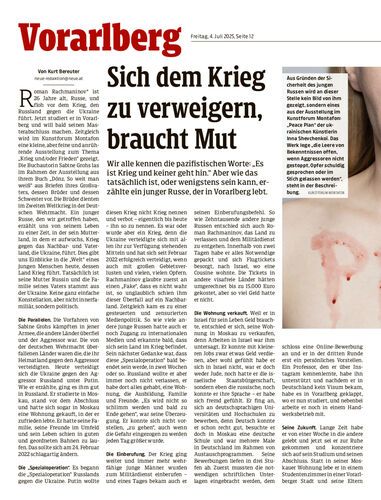 Wir alle kennen die pazifistischen Worte: „Es ist Krieg und keiner geht hin.“ Aber wie das tatsächlich ist, oder wenigstens sein kann, erzählte ein junger Russe, der in Vorarlberg lebt.