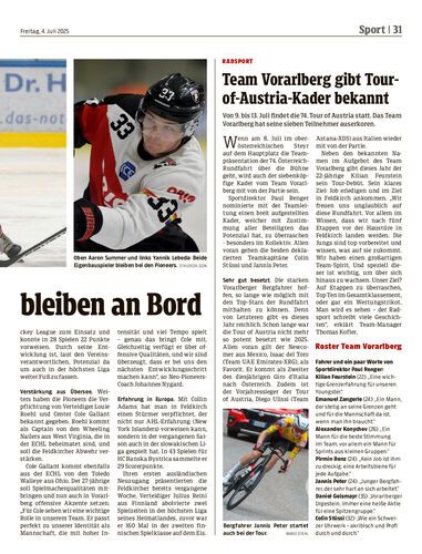 Von 9. bis 13. Juli findet die 74. Tour of Austria statt. Das Team Vorarlberg hat seine sieben Teilnehmer auserkoren.