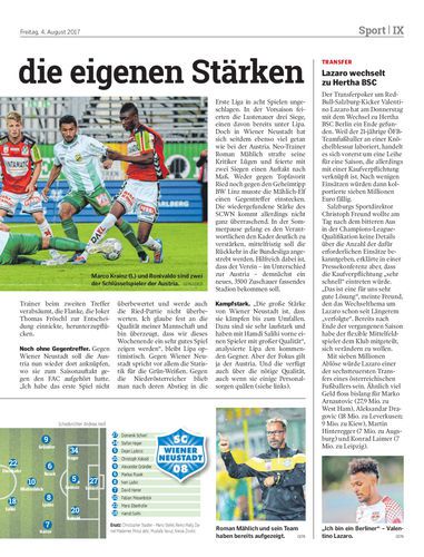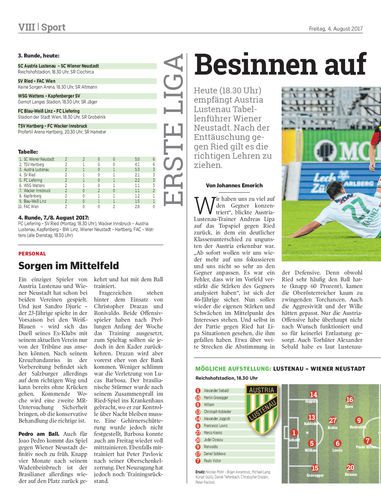 Heute (18.30 Uhr) empfängt Austria Lustenau Tabellenführer Wiener Neustadt. Nach der Enttäuschung gegen Ried gilt es die richtigen Lehren zu ziehen.