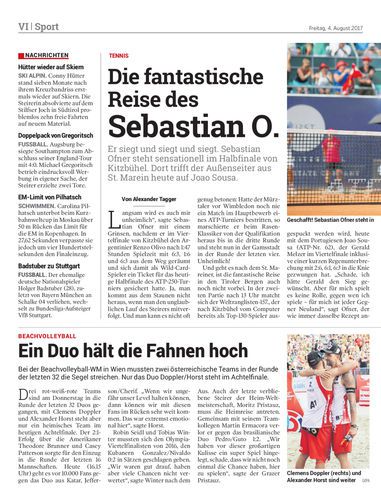 Er siegt und siegt und siegt. Sebastian Ofner steht sensationell im Halbfinale von Kitzbühel. Dort trifft der Außenseiter aus St. Marein heute auf Joao Sousa.