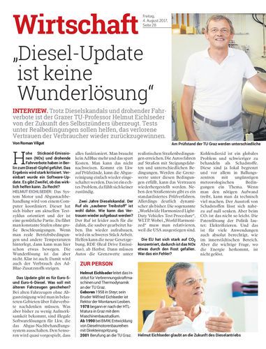 Trotz Dieselskandals und drohender Fahrverbote ist der Grazer TU-Professor Helmut Eichlseder von der Zukunft des Selbstzünders überzeugt. Tests unter Realbedingungen sollen helfen, das verlorene Vertrauen der Verbraucher wieder zurückzugewinnen. Von Roman Vilgut