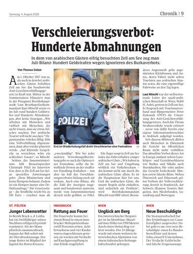 In dem von arabischen Gästen eifrig besuchten Zell am See zog man Juli-Bilanz: Hundert Geldstrafen wegen Ignorieren des Burkaverbots.
