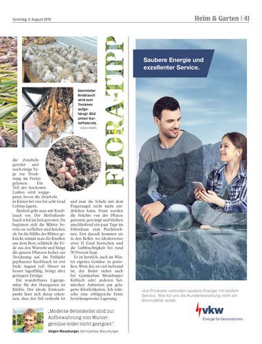In zahlreichen heimischen Gärten steuert die Erntezeit auf ihren Höhepunkt zu. Gemüse und Knollen, die nicht gleich verarbeitet werden, können für den Winter eingelagert werden.