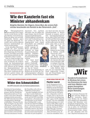 Brigitte Bierlein: Ihr Zögern, ihren Mut, die ersten Fallstricke beschreibt ein Porträt in der Österreich-„Zeit“.