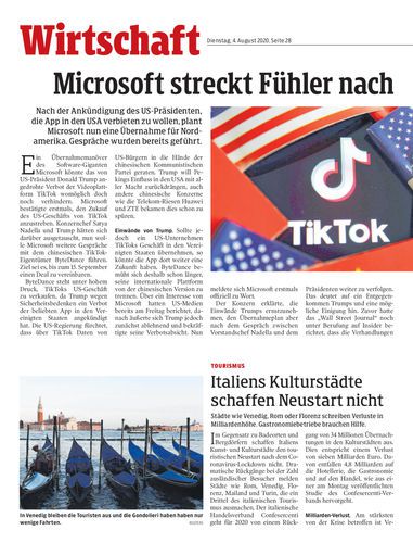 Nach der Ankündigung des US-Präsidenten, die App in den USA verbieten zu wollen, plant Microsoft nun eine Übernahme für Nordamerika. Gespräche wurden bereits geführt.