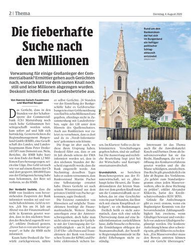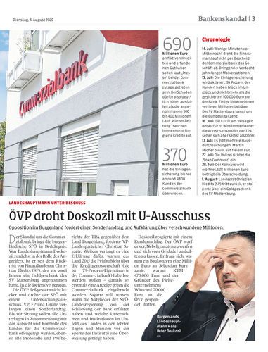 Vorwarnung für einige Großanleger der Commerzialbank? Ermittler gehen auch Gerüchten nach, wonach kurz vor dem lauten Knall noch still und leise Millionen abgezogen wurden. Doskozil schließt das für Landesbetriebe aus.