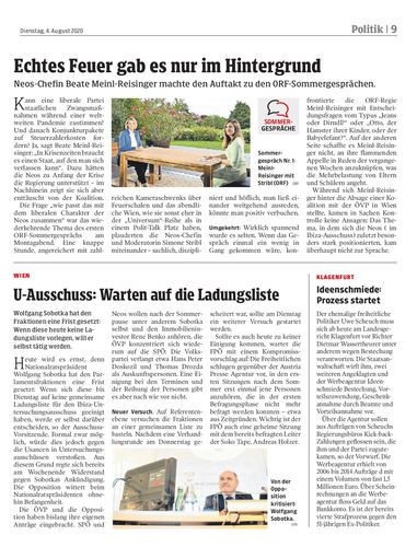 Neos-Chefin Beate Meinl-Reisinger machte den Auftakt zu den ORF-Sommergesprächen.