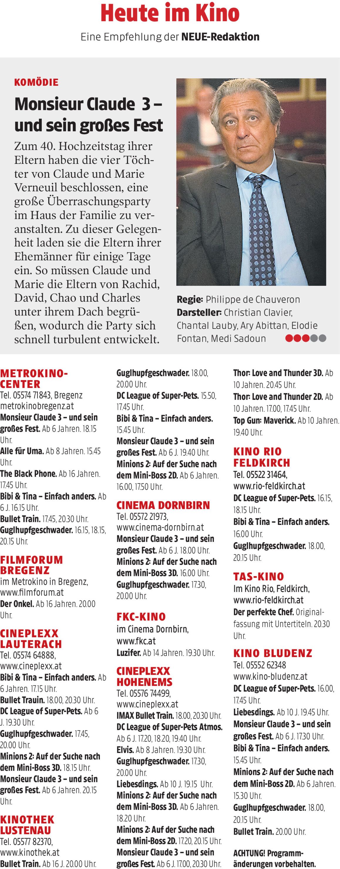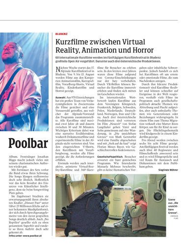 60 internationale Kurzfilme werden im fünftägigen Kurzfilmfestival in Bludenz großteils Open Air vorgeführt. Darunter auch drei österreichische Produktionen.