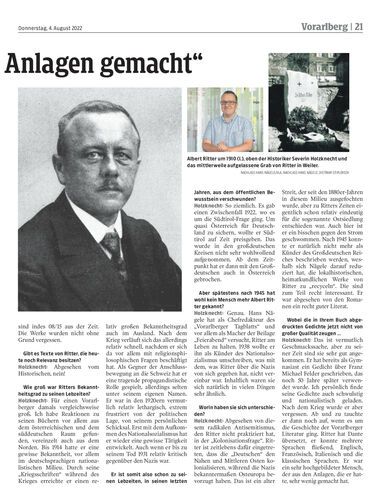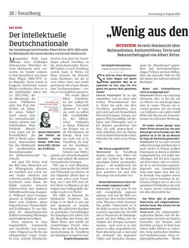 Interview. Severin Holzknecht über Nationalismus, Antisemitimus, Texte und Bekanntheitsgrad von Albert Ritter.