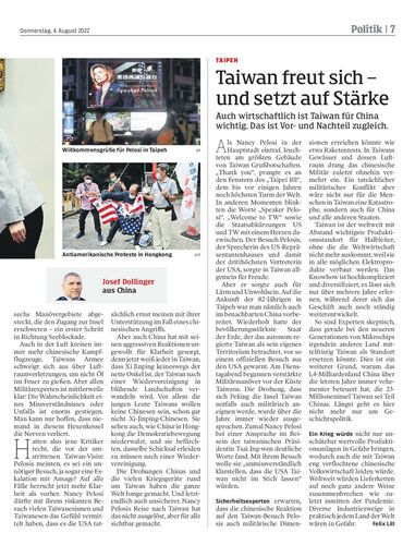 Analyse. Nach Nancy Pelosis Besuch in Taiwan reagiert Peking mit Luftraum- verletzungen. Viele fragen sich: Droht jetzt ein neuer Krieg? Doch das ist die falsche Frage.