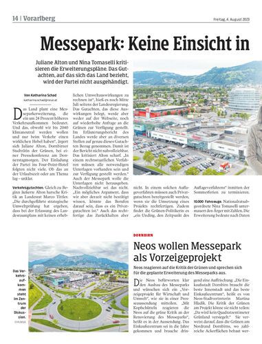 Neos reagieren auf die Kritik der Grünen und sprechen sich für die geplante Erweiterung des Messeparks aus.