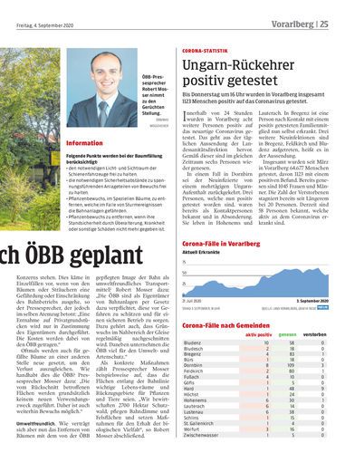 Bis Donnerstag um 16 Uhr wurden in Vorarlberg insgesamt 1123 Menschen positiv auf das Coronavirus getestet.