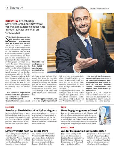 Der gebürtige Schweizer Jaron Engelmayer trat vor wenigen Tagen sein neues Amt als Oberrabbiner von Wien an. Von Wolfgang Sotill