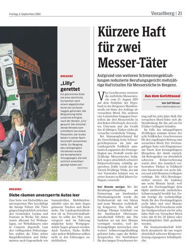 Aufgrund von weiteren Schmerzengeldzahlungen reduzierte Berufungsgericht mehrjährige Haftstrafen für Messerstiche in Bregenz.