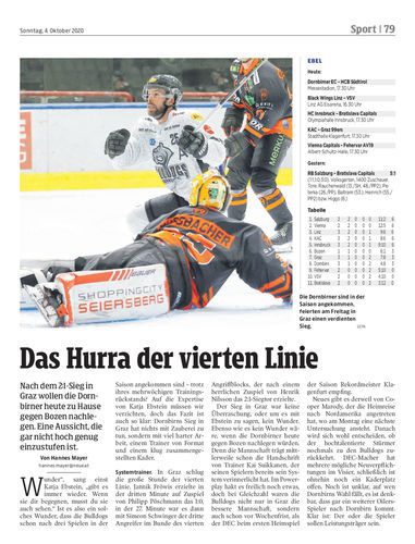 Nach dem 2:1-Sieg in Graz wollen die Dornbirner heute zu Hause gegen Bozen nachlegen. Eine Aussicht, die gar nicht hoch genug einzustufen ist.