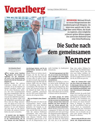 Bregenz. Michael Ritsch ist neuer Bürgermeister von Bregenz, hat aber in der Stadtvertretung keine Mehrheit. Damit ist er auf ein Entgegenkommen der ÖVP oder Grünen angewiesen. Seiten 16/17 Hartinger, Paulitsch