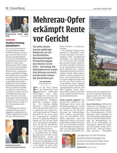 Vor zehn Jahren zog der gebürtige Bregenzer als erstes kirchliches Missbrauchsopfer Österreichs gegen das Kloster vor Gericht – mit Erfolg. Die Heimopferrente wurde ihm bislang verwehrt, mittlerweile stehen die Aussichten gut.