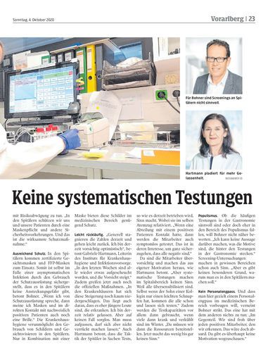 Anders als in der Gastronomie wird in den Spitälern nicht regelmäßig durchgetestet. Die Schutzmaßnahmen seien ausreichend. Zudem werden