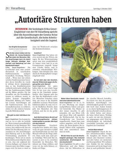 Interview. Die Soziologin Erika Geser-Engleitner von der FH Vorarlberg spricht über die Auswirkungen der Corona-Krise auf die Gesellschaft, die hohe Arbeitslosigkeit und die Jugend.
