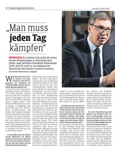 Interview. Er schäme sich nicht für seine besten Beziehungen zu Russland und China, sagt Serbiens Präsident Aleksandar Vučić. Der EU wirft er vor, Belgrad im Tausch für den Kosovo nichts zu bieten. Von Christian Wehrschütz aus Belgrad