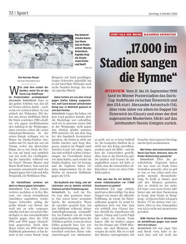 Interview. Vom 21. bis 24. September 1990 fand im Wiener Praterstadion das Davis-Cup-Halbfinale zwischen Österreich und den USA statt. Alexander Antonitsch (54), über viele Jahre vor allem im Doppel für Österreich im Einsatz und einer der drei sogenannten Musketiere, blickt auf das Jahrhundert-Tennis-Ereignis zurück.