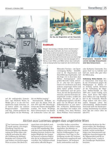 Die vor 50 Jahren eröffnete Kabinenbahn in Mellau brachte wirtschaftliche Impulse für das Dorf und die umliegenden Orte. Unvergessen sind die Mellauer Weltcuprennen. In einem Erzählcafé werden Geschichten von damals erzählt.