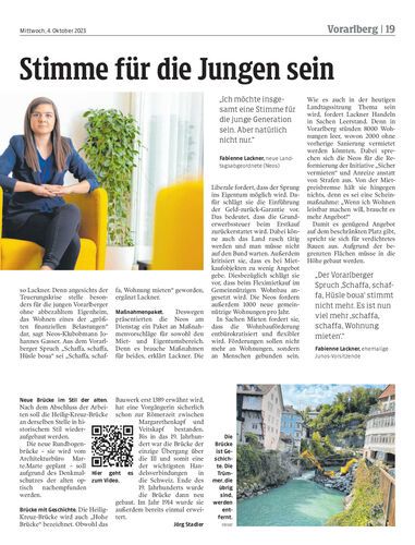 Heute wird Fabienne Lackner (Neos) zur Landtagsabgeordneten angelobt. Im Landtag möchte sie sich für das Thema Wohnen einsetzen. Sie präsentierte gestern Maßnahmen.
