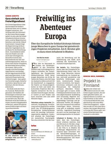 Über das Europäische Solidaritätskorps können junge Menschen in ganz Europa bei gemeinnützigen Projekten mitarbeiten. Am 8. Oktober gibt es dazu einen Infoabend in Bludenz.