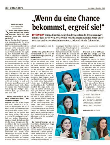 Interview. Verena Eugster, neue Bundesvorsitzende der Jungen Wirtschaft, über ihren Weg, Netzwerke, Herausforderungen für junge Unternehmen und warum Optimismus entscheidend für die Zukunft ist.