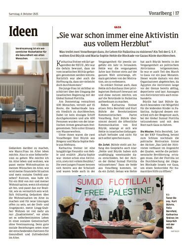 Was treibt zwei Vorarlberger dazu, ihr Leben für Palästina zu riskieren? Als Teil der G. S. F. wollten Erol Büyük und Maria-Sophie Hehle die Blockade vor Gazas Küste durchbrechen.