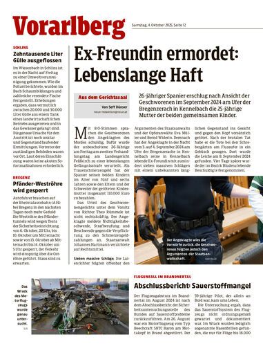 26-jähriger Spanier erschlug nach Ansicht der Geschworenen im September 2024 am Ufer der Bregenzerach in Kennelbach die 25-jährige Mutter der beiden gemeinsamen Kinder.