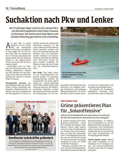 Suchaktion nach Pkw und Lenker in Kops-Stausee