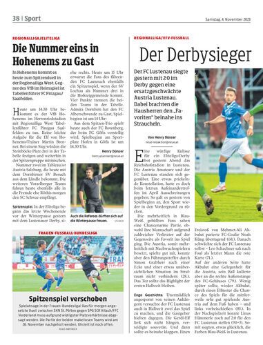 Der FC Lustenau siegte gestern mit 2:0 im Derby gegen eine ersatzgeschwächte Austria Lustenau. Dabei brachten die Hausherren den „Favoriten“ beinahe ins Straucheln.