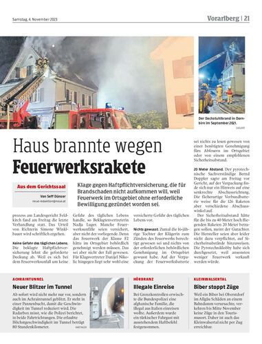 Klage gegen Haftpflichtversicherung, die für Brandschaden nicht aufkommen will, weil Feuerwerk im Ortsgebiet ohne erforderliche Bewilligung gezündet worden sei.