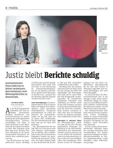 Justizministerin Alma Zadic hat es bisher verabsäumt, dem Parlament zwei Weisungsberichte zu übermitteln.
