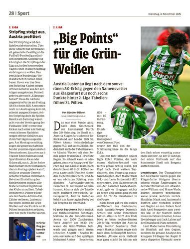 Austria Lustenau liegt nach dem souveränen 2:0-Erfolg gegen den Namensvetter aus Klagenfurt nur noch sechs Punkte hinter 2.-Liga-Tabellenführer St. Pölten.