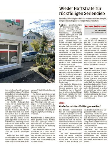 Teilbedingte Gefängnisstrafe für vorbestraften 38-Jährigen, der gewerbsmäßig aus unversperrten Autos stahl.
