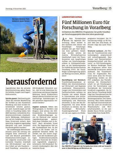 Fünf Millionen Euro für Forschung in Vorarlberg