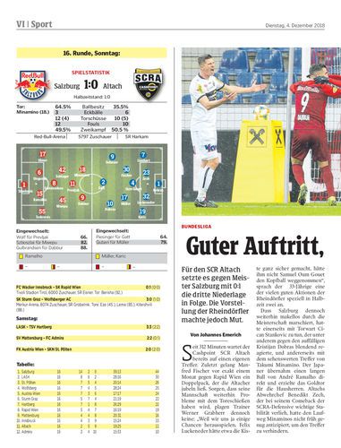 Für den SCR Altach setzte es gegen Meister Salzburg mit 0:1 die dritte Niederlage in Folge. Die Vorstellung der Rheindörfler machte jedoch Mut.
