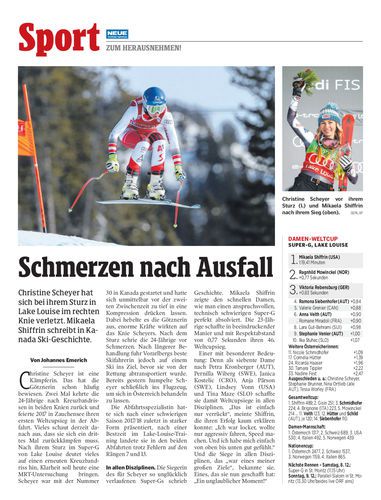 Christine Scheyer hat sich bei ihrem Sturz in Lake Louise im rechten Knie verletzt. Mikaela Shiffrin schreibt in Kanada Ski-Geschichte.